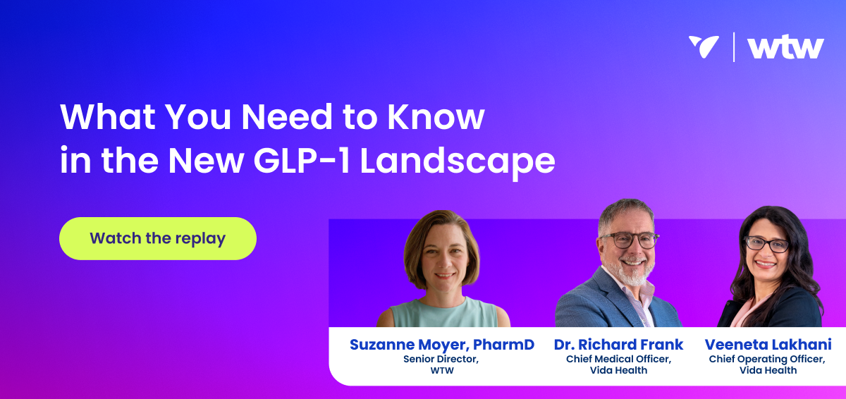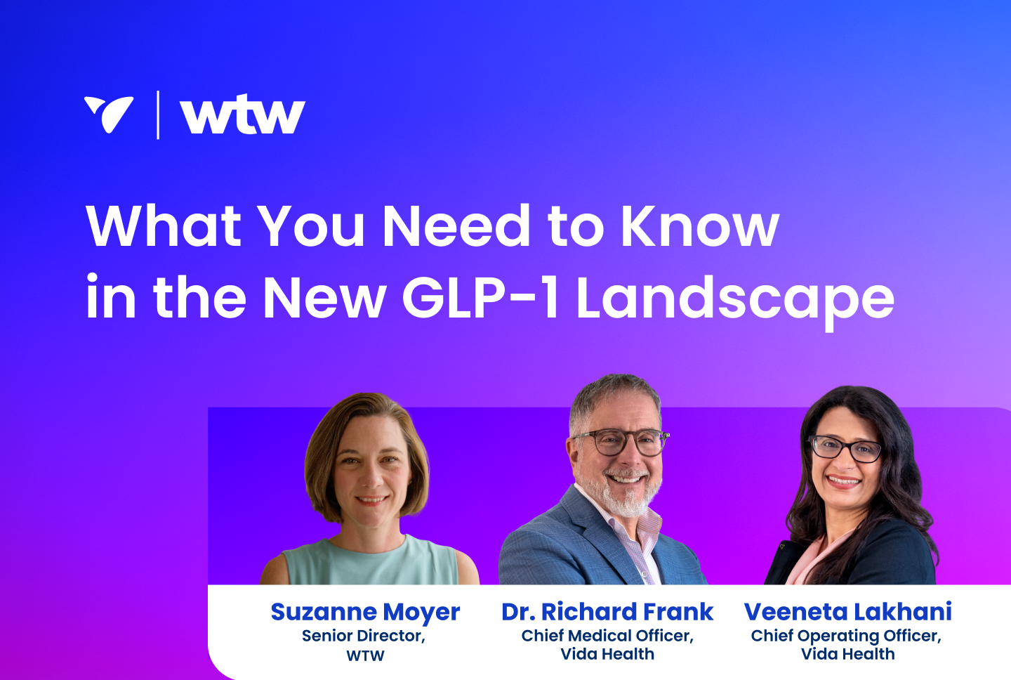 Join Vida Health’s Dr. Richard Frank, Veeneta Lakhani and Suzanne Moyer, Senior Director, WTW, as they share data-driven results from Vida’s medical weight-loss program and discuss how consultants can help clients adapt.